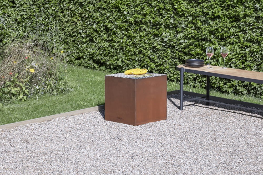 Palenisko FireCube wykonane ze stali corten jest idealne do ogrodu bądź patio. Jest w kształcie sześcianu i można postawić je na dwa sposoby: pionowo lub pod kątem. Dzięki temu palenisko wygląda wyjątkowo, jak również może chronić płomień przed wiatrem. FireCube jest zaprojektowane na każdą pogodę i całoroczne użycie. Można dokupić kratkę do grillowania.