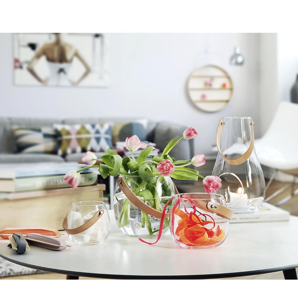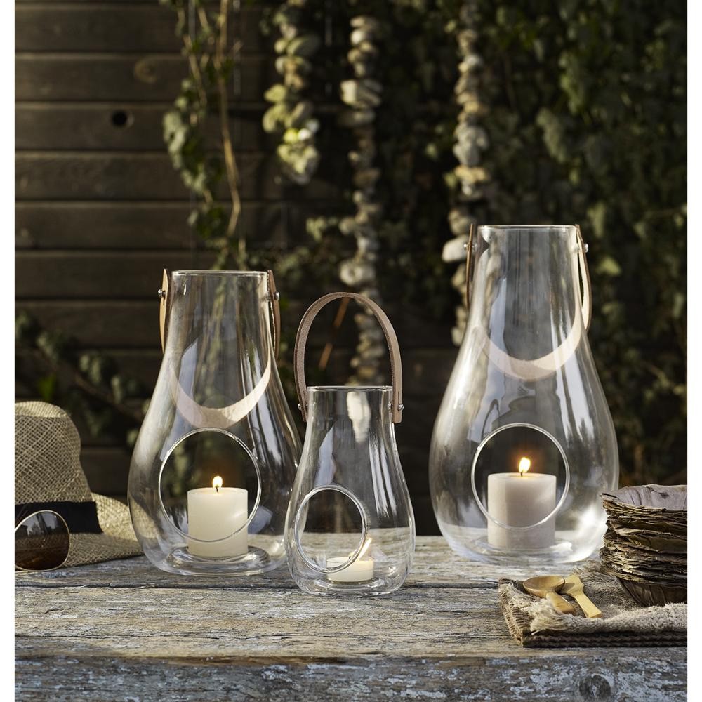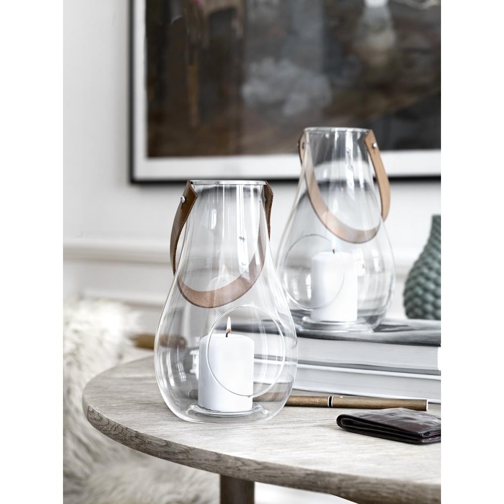 Lampion, skórzany uchwyt L, szkło - Holmegaard