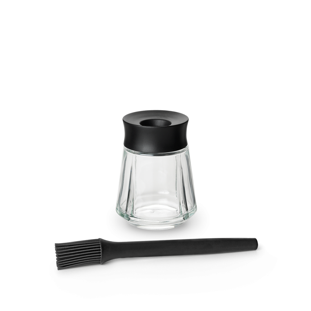 Pojemnik do marynaty z pędzelkiem z linii Grand Cru Kitchen, do przygotowania i przechowywania domowej marynaty. Szklana butelka, wykonana ze szkła, wygodna w użyciu, z dołączonym pędzelkiem.