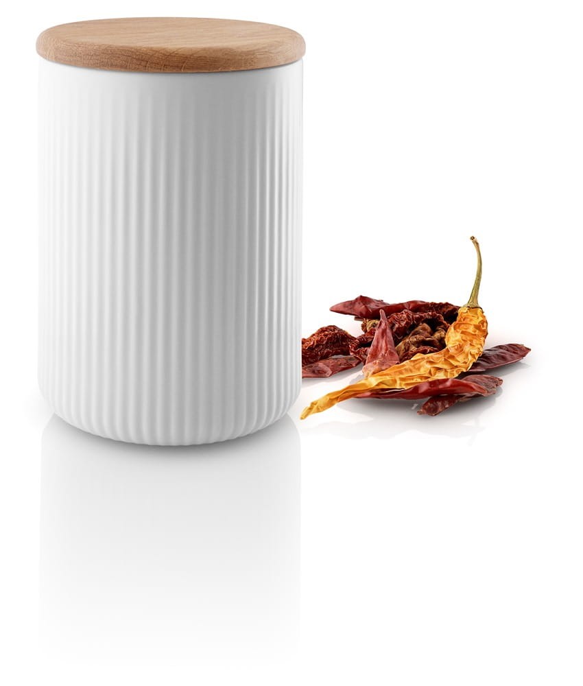 Porcelanowy pojemnik z dębową pokrywką z kolekcji Legio Nova. Wykonany z przepięknej, śnieżnobiałej porcelany. Pojemność 1000 ml.