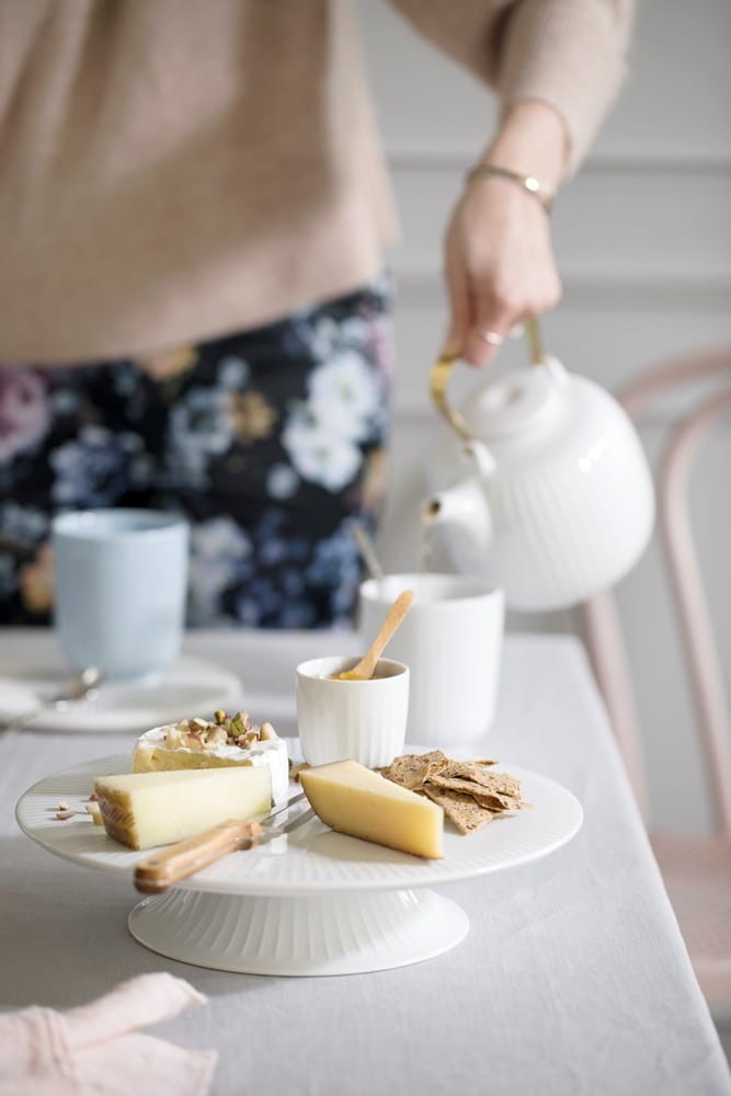 Porcelanowa, elegancka patera do tortu na nóżce z linii Hammershoi, z kultowymi już dla tej linii i całej marki prążkami. Kolor biały.
