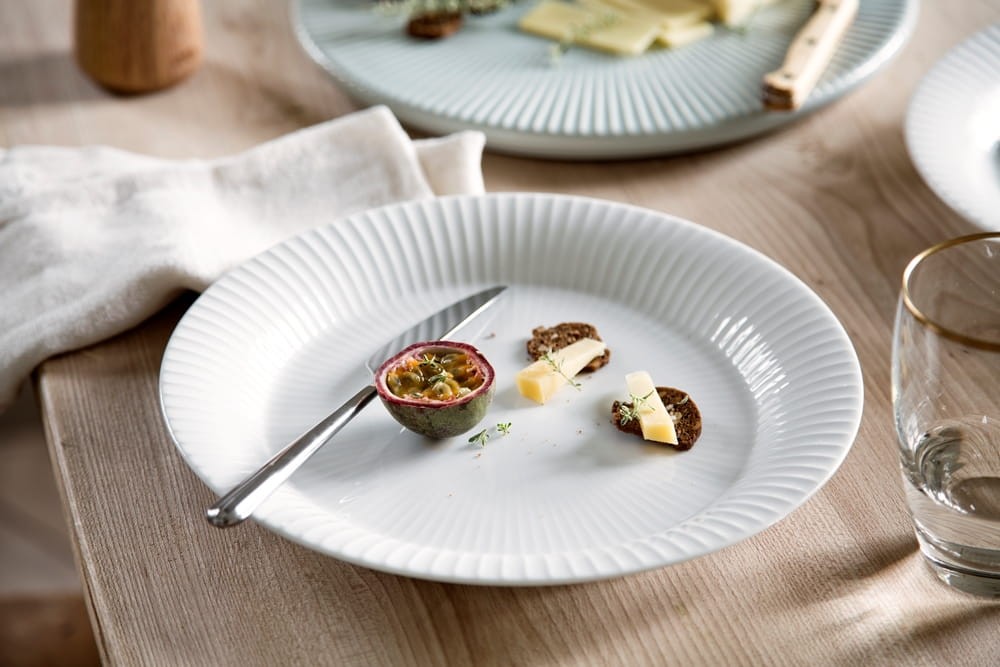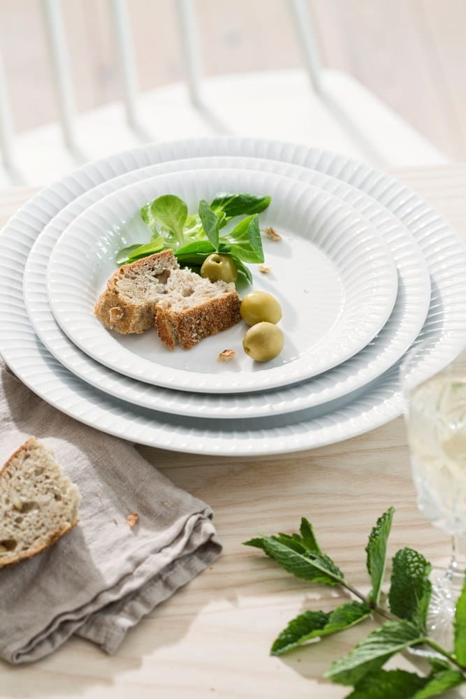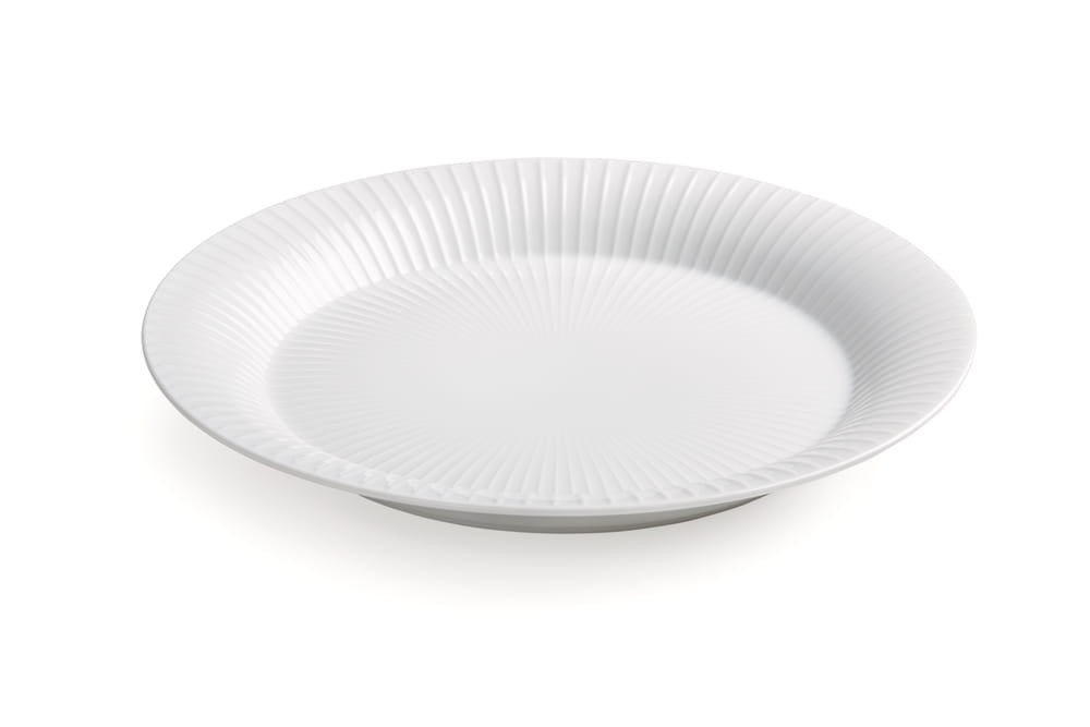 Porcelanowy talerz o średnicy 27 cm, z linii Hammershoi, z kultowymi już dla tej linii i całej marki prążkami. Kolor biały.
