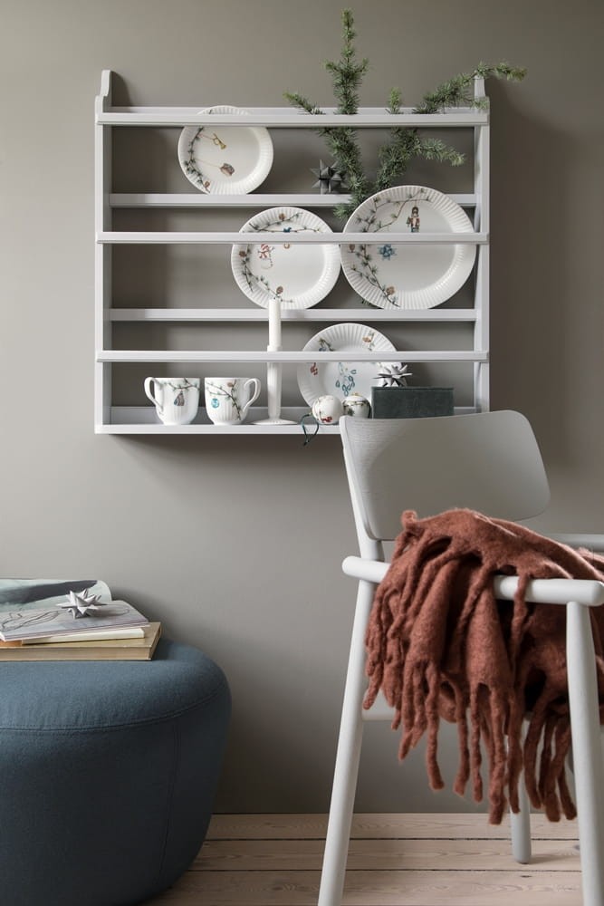 Porcelanowy talerz z motywami świątecznymi, z linii Hammershoi Christmas 2018, z kultowymi już dla tej linii i całej marki prążkami. Kolor biały.