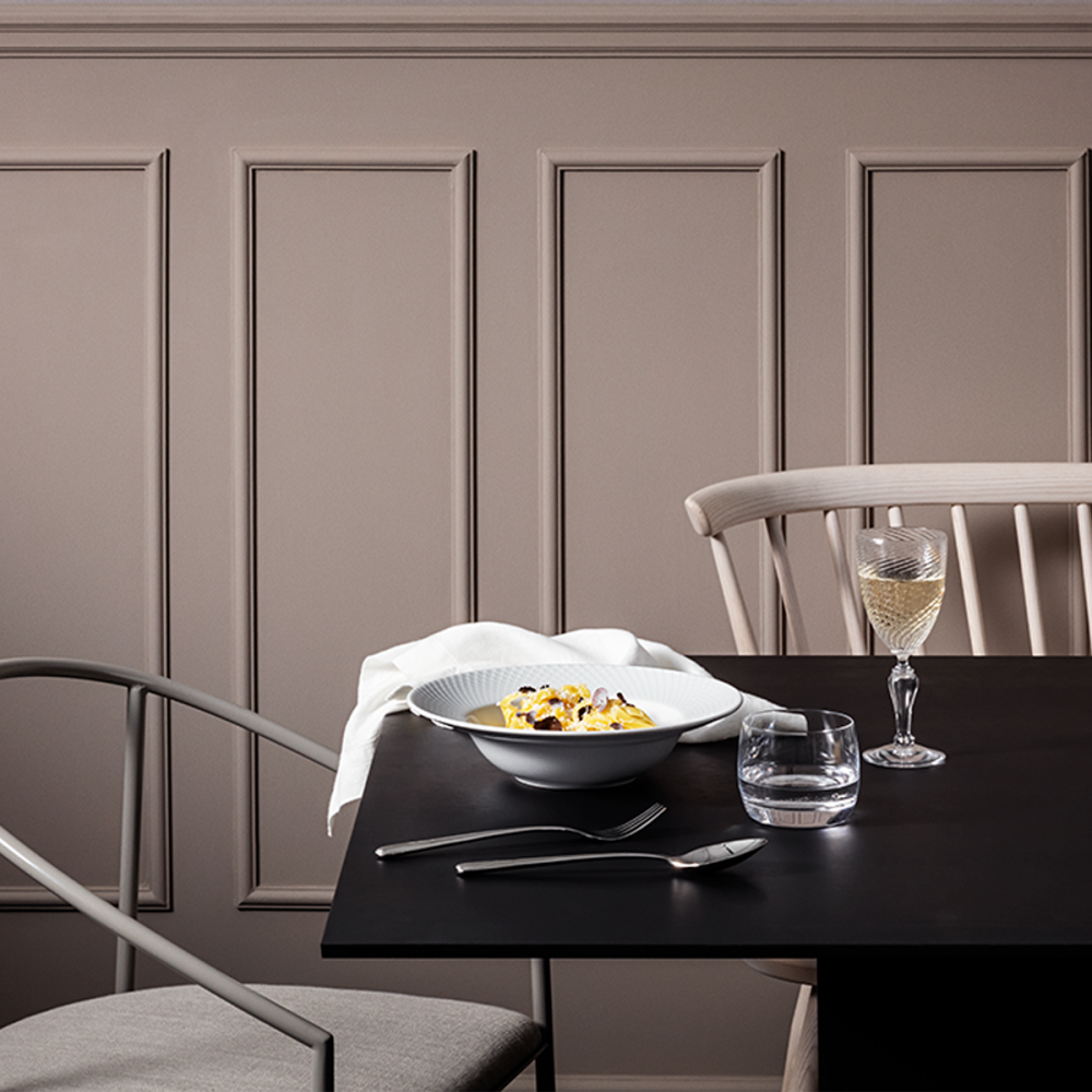 Porcelanowy talerz do pasty, z linii Rhombe, Lyngby Porcelain w kolorze białym o średnicy 24,5 cm.