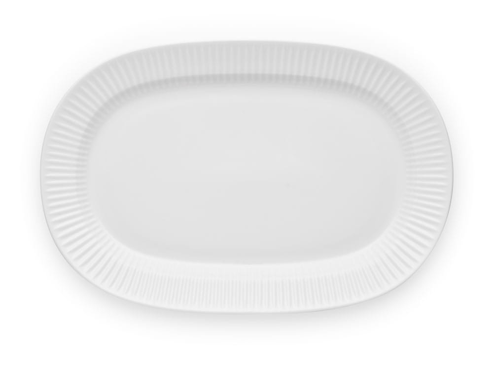 Piękny talerz do serwowania potraw z białej porcelany z charakterystycznymi żłobieniami, z kolekcji Legio Nova. Dzięki dekoracyjnym żłobieniom jest idealny również do serwowania owoców czy do celów dekoracyjnych.