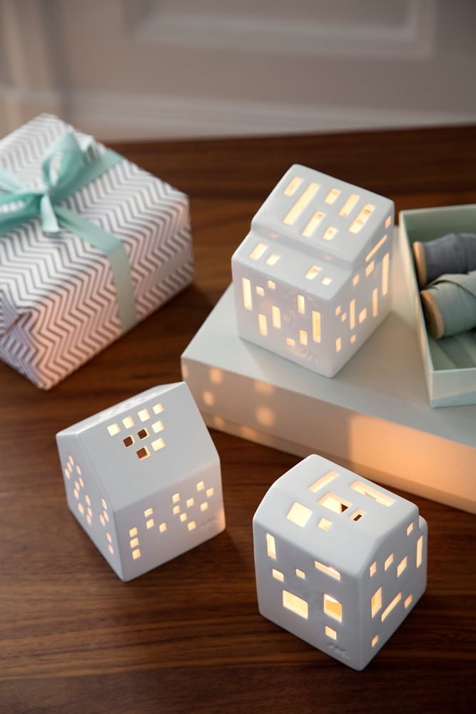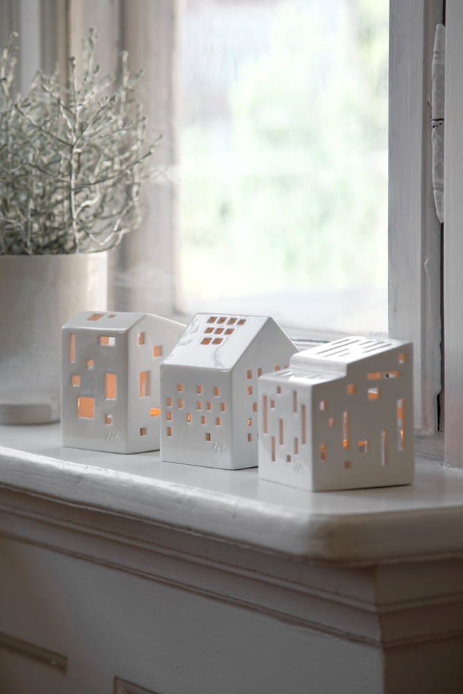 Linia Urbania to seria fajansowych świeczników zaprojektowanych jako ażurowe, zamknięte domki o różnej wielkości i kształcie. Możesz stworzyć urocze zestawy i porozstawiać je po domu lub zestawić w grupie na przykład na parapecie. Rozświetlą dom ciepłym, rozproszonym światłem świec a ich biel i niezwykłe kształty, będą Ci przypominały ośnieżone domy w zimowy wieczór.