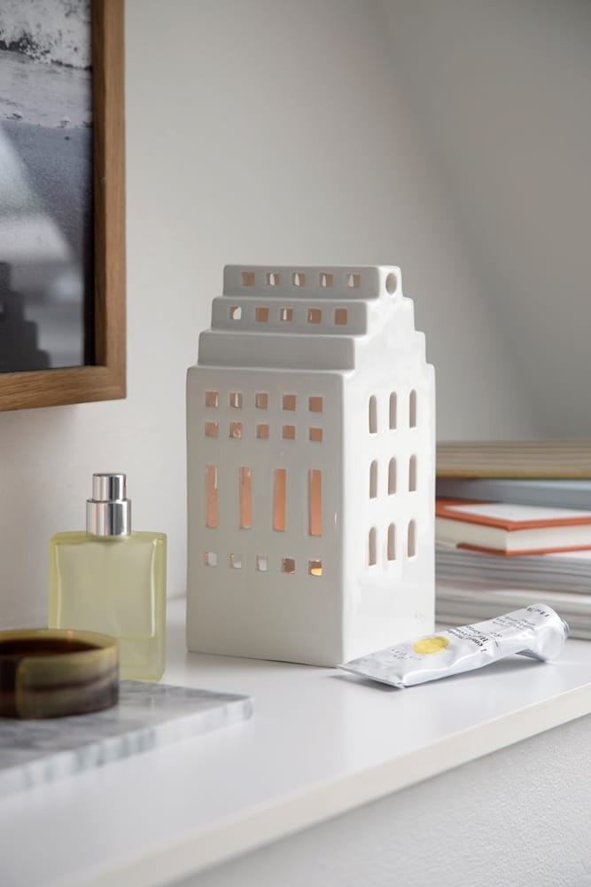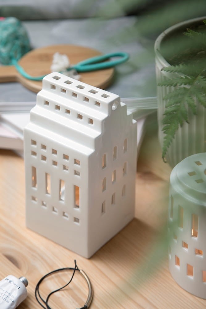 Linia Urbania to seria fajansowych świeczników zaprojektowanych jako ażurowe, zamknięte domki o różnej wielkości i kształcie. Możesz stworzyć urocze zestawy i porozstawiać je po domu lub zestawić w grupie na przykład na parapecie. Rozświetlą dom ciepłym, rozproszonym światłem świec a ich biel i niezwykłe kształty, będą Ci przypominały ośnieżone domy w zimowy wieczór.