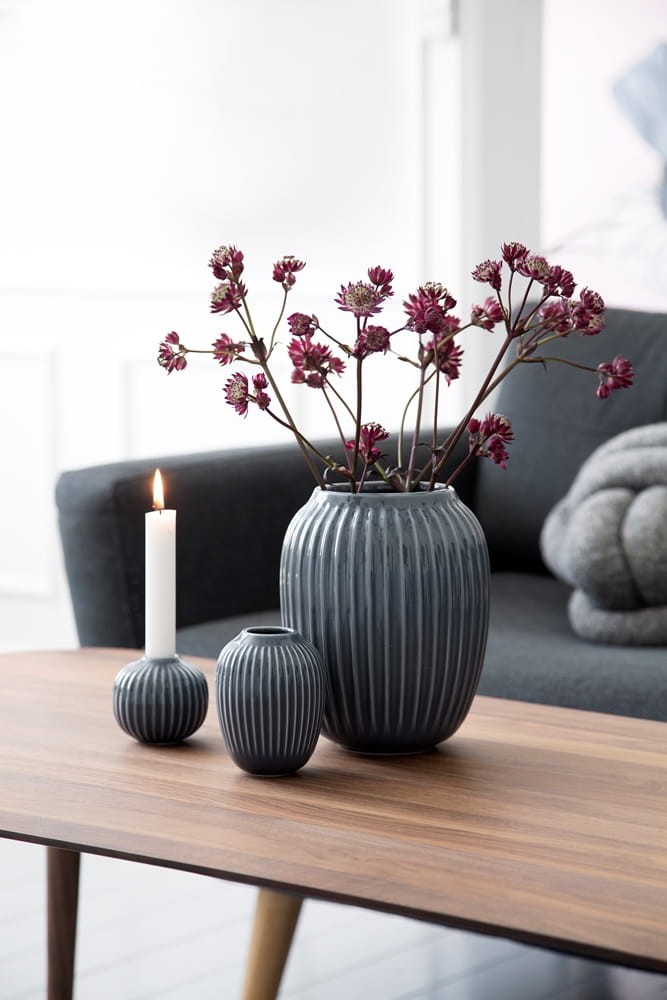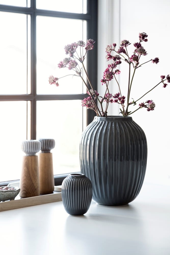 Twój nowy wazon od Kahler Design zaprezentuje się imponująco na stole, komodzie czy ustawiony bezpośrednio na podłodze. Linia Hammershoi jest ozdobiona eleganckimi i bardzo charakterystycznymi dla marki rowkami. Wazony posiadają równie charakterystyczne kołnierzyki, które pomagają utrzymać kwiaty i gałęzie w odpowiednim porządku;). Wystarczy włożyć zielone liście, wiosenne gałęzie pojedyncze kwiaty lub bukiet ... i więcej nic nie trzeba zrobić.