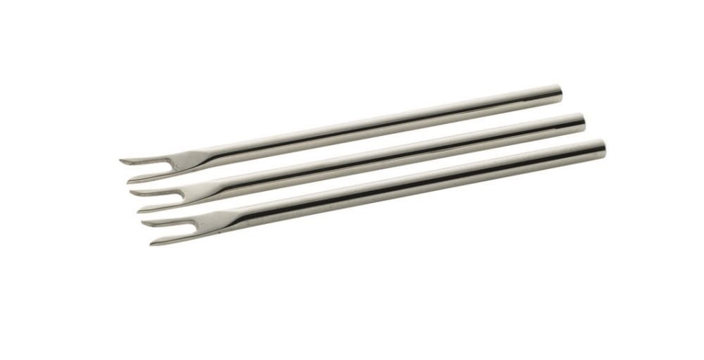 Elegancki komplet trzech widelców do serwowania wykonanych ze stali nierdzewnej.