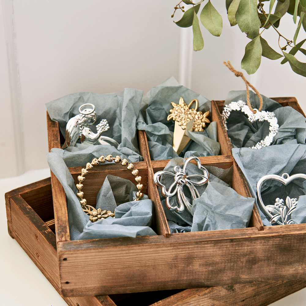 Każda ozdoba świąteczna z linii Karen Blixen jest indywidualnie zapakowana w elegancki kartonik, dzięki czemu nadaje się na piękny prezent.